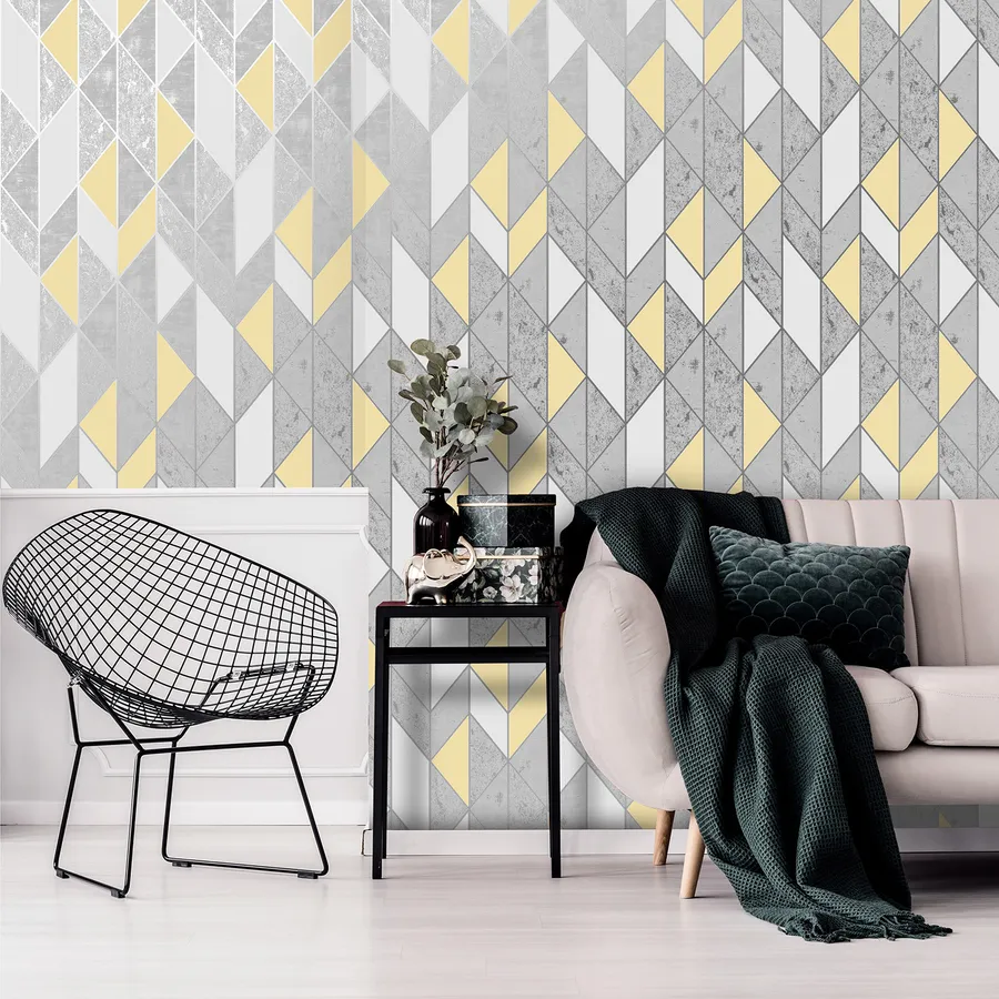 Gray And Yellow Geometric Living Room Wallpaper