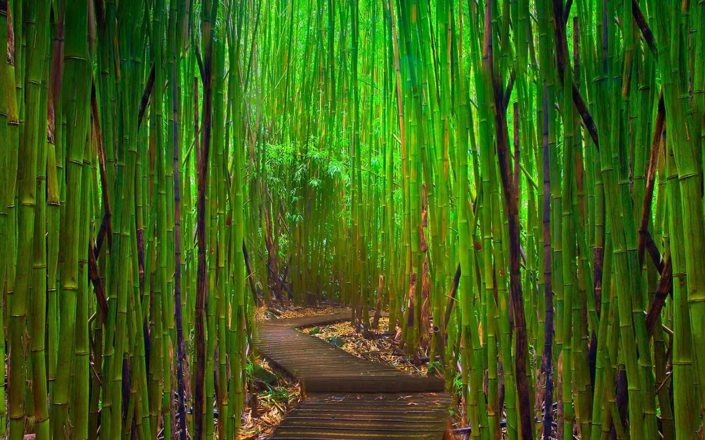 Green Bamboo Stalks Line A Pristine Path Wallpaper