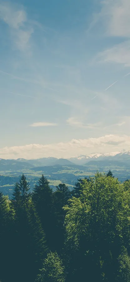 Green Sky Mountains And Trees Wallpaper