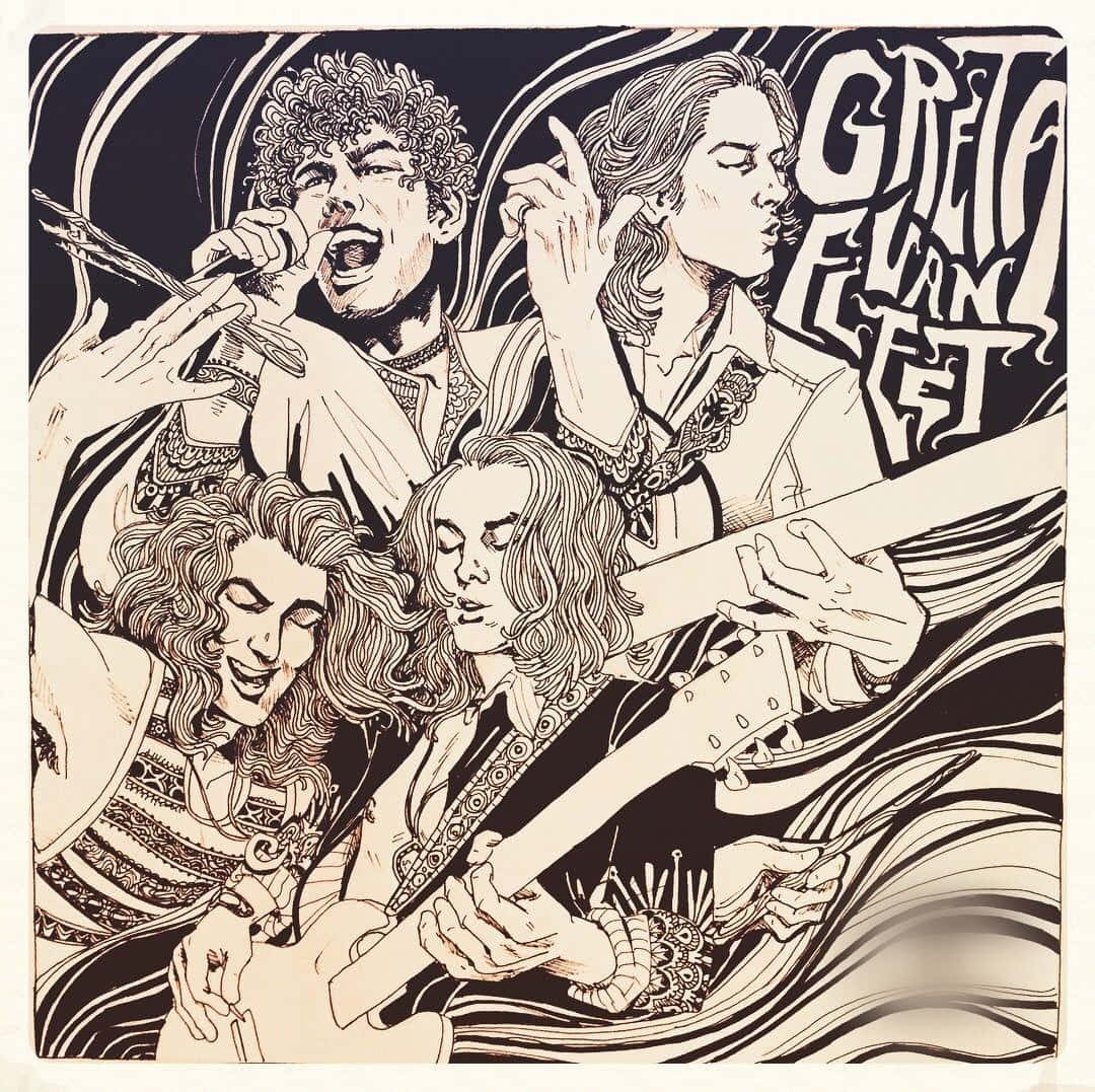 Greta Van Fleet Rock Band Sketched Picture Wallpaper