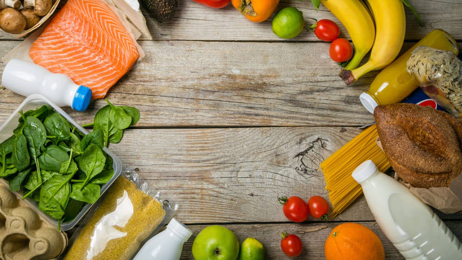 Grocery Items Circular Shape Wallpaper