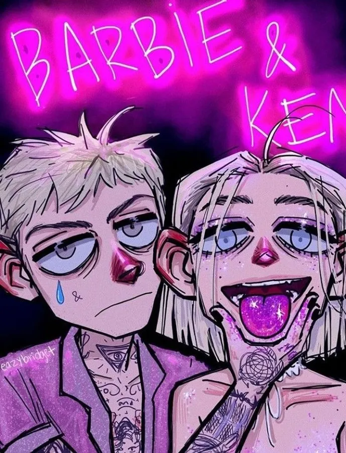 Grunge Cartoon Barbie Ken Neon Pink Wallpaper