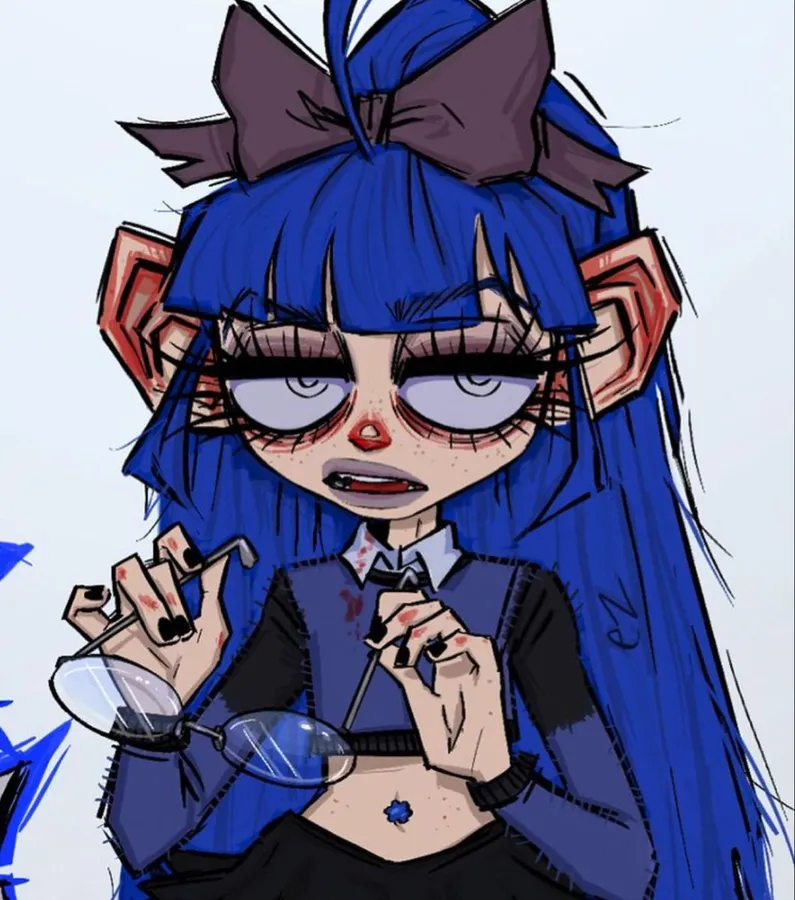 Grunge Cartoon Drawing Girl Blue Hair Red Nose Wallpaper