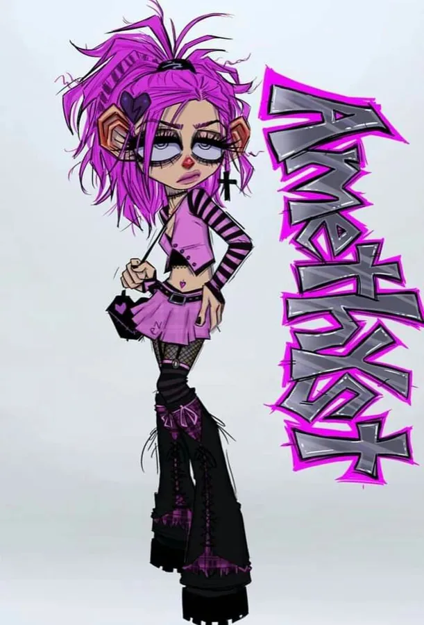Grunge Cartoon Girl Purple Black Aesthetic Wallpaper