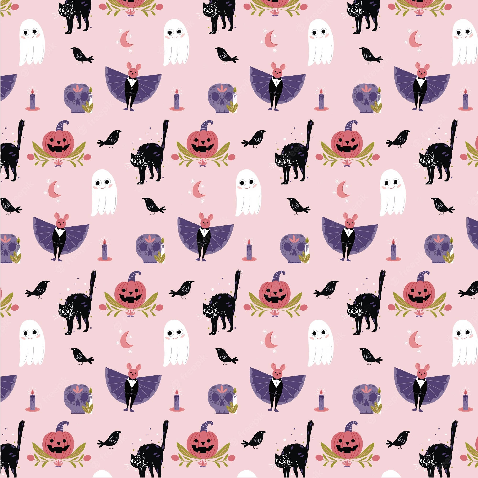 Halloween Pattern With Ghosts And Pumpkins Wallpaper