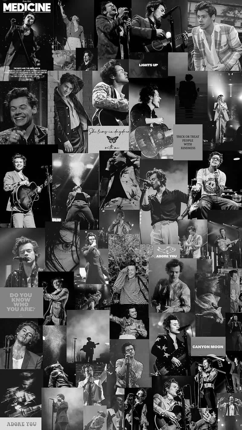 Harry Styles Black And White Performance Collage Wallpaper