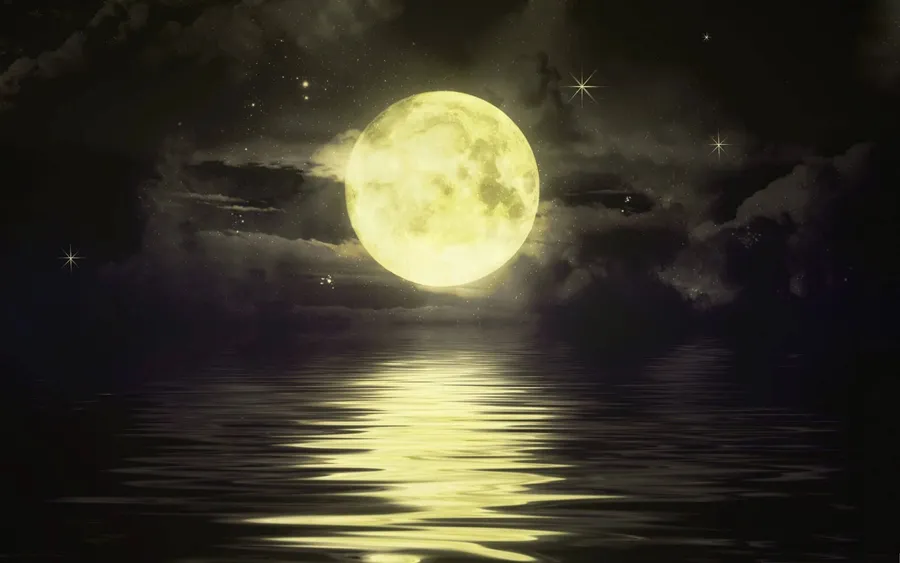 Hazy Yellow Night Sky Moon Wallpaper