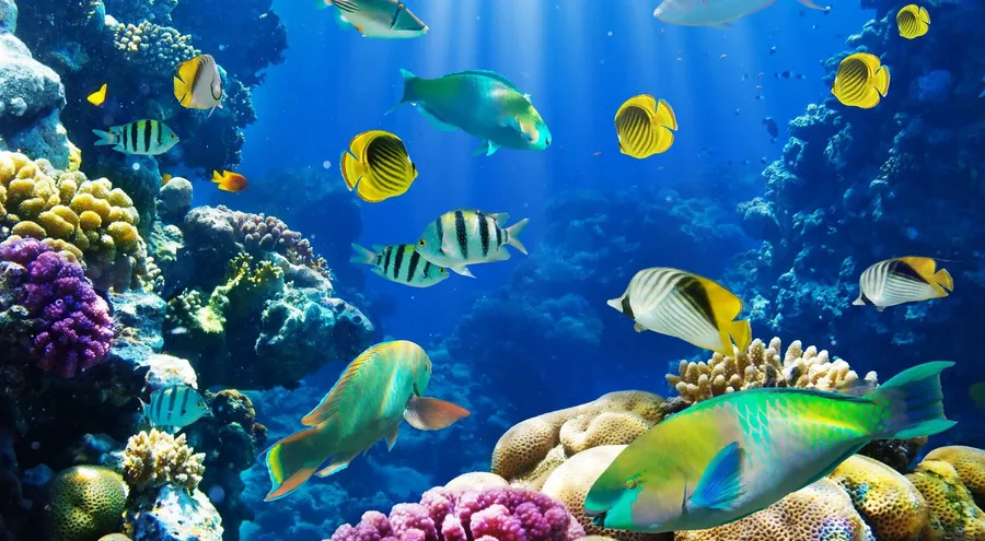 Hd Fishes Swimming Near Coral Reefs Wallpaper