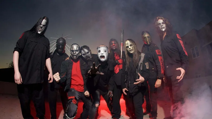 Heavy Metal Band Slipknot In Dark Attire Performing On Stage Wallpaper