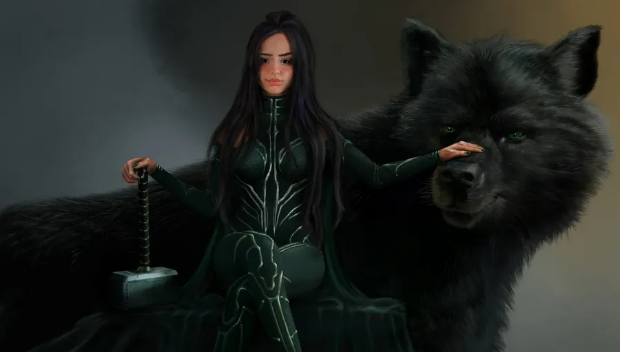 Hela And Fenrir Art Wallpaper