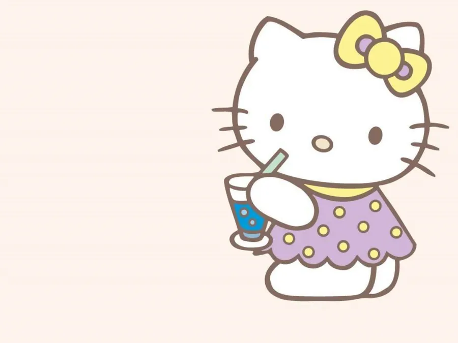 Hello Kitty Laptop Sipping Drink Wallpaper
