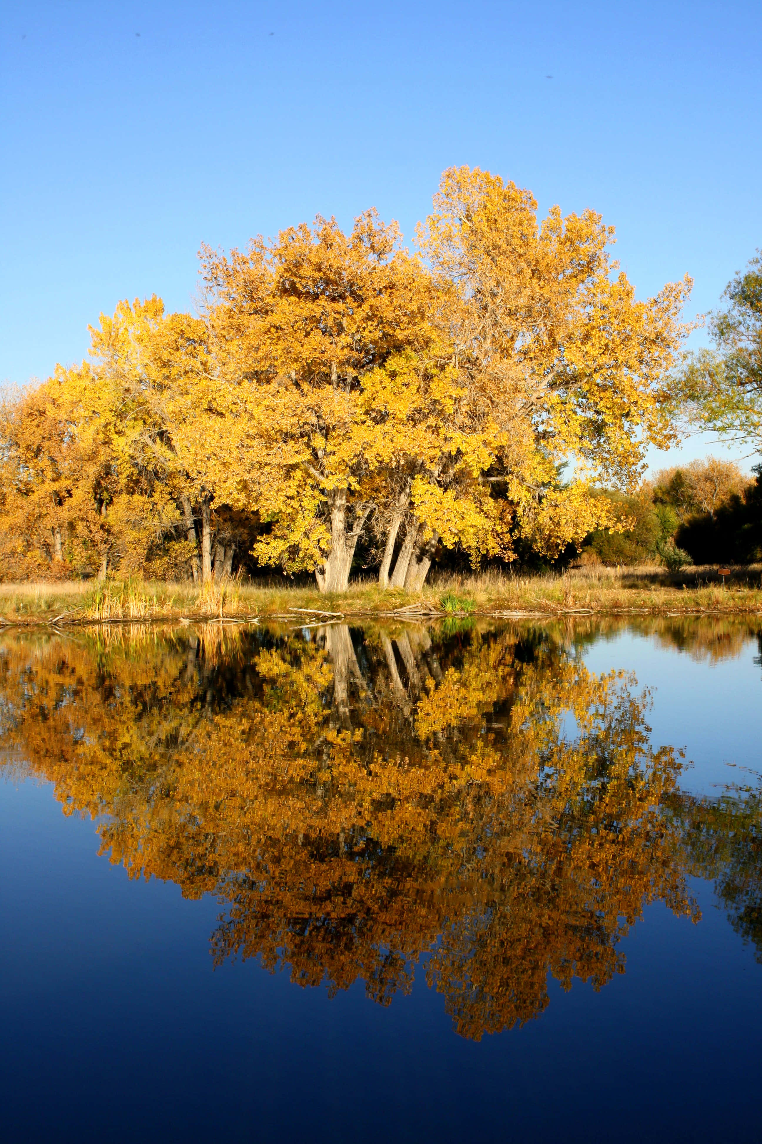 High Resolution Fall Gold Leaves And Lake Wallpaper
