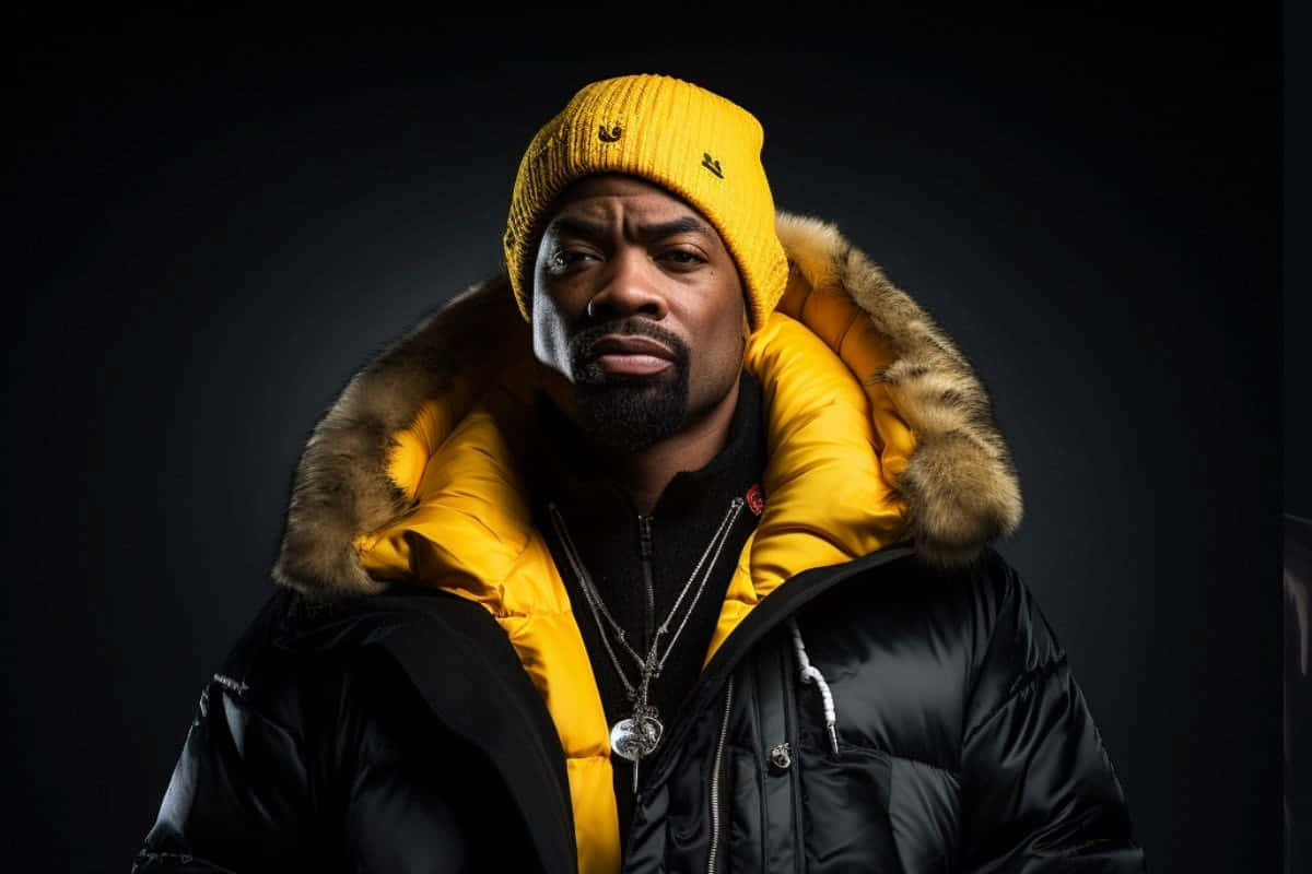 Hip Hop_ Artist_in_ Yellow_ Beanie_and_ Black_ Jacket Wallpaper