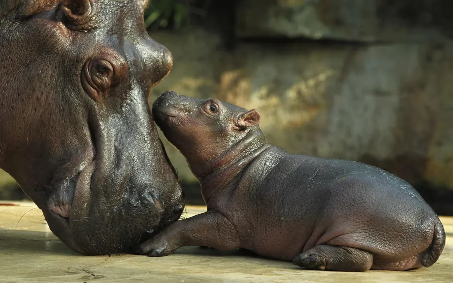 Hippopotamus Mother And Baby Wallpaper