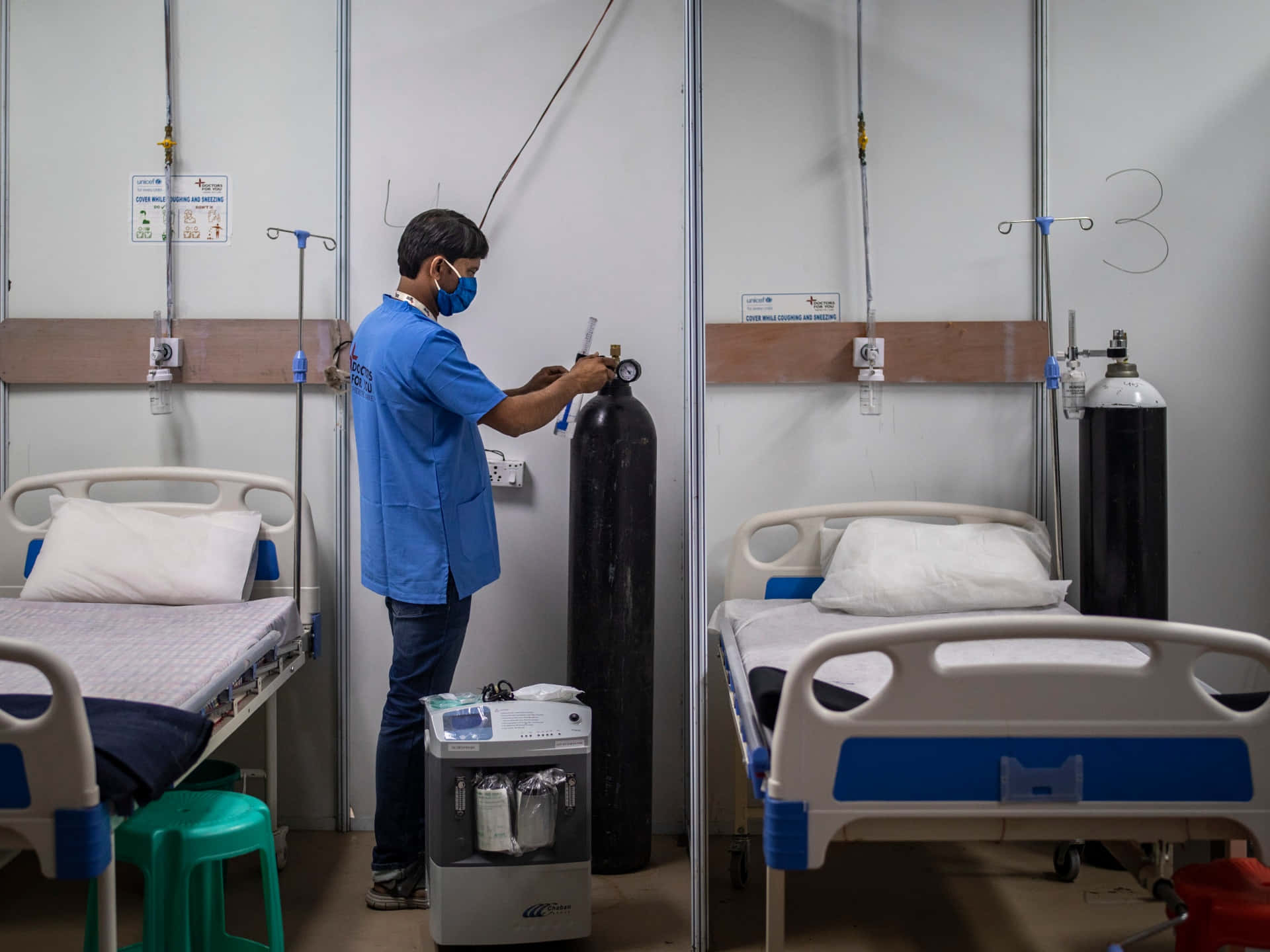 Hospital Bed With Nurse Fixing Oxygen Wallpaper