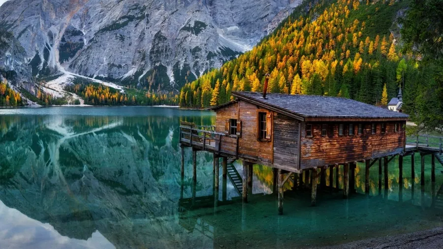 House In Lake Google Meet Background Wallpaper