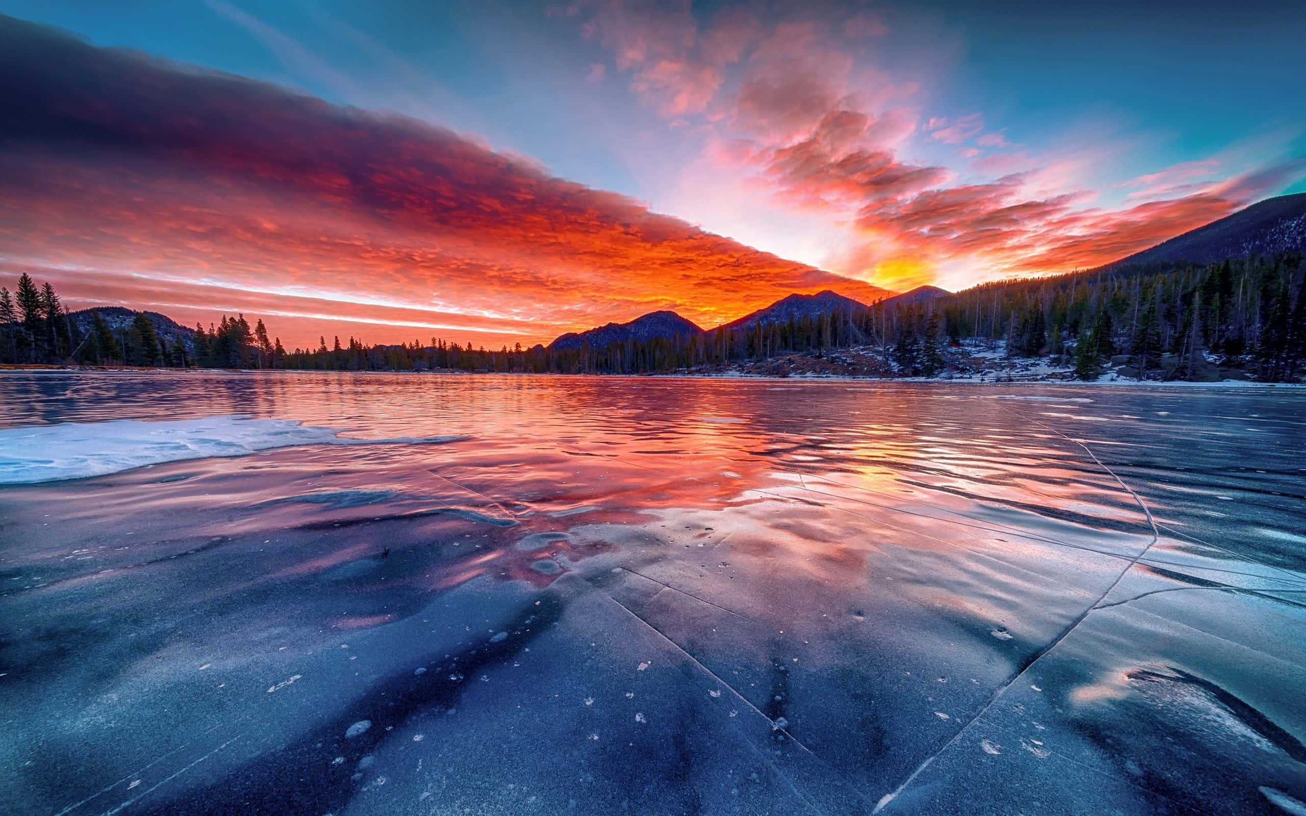 Icy Lake With Mountains Sunset Wallpaper