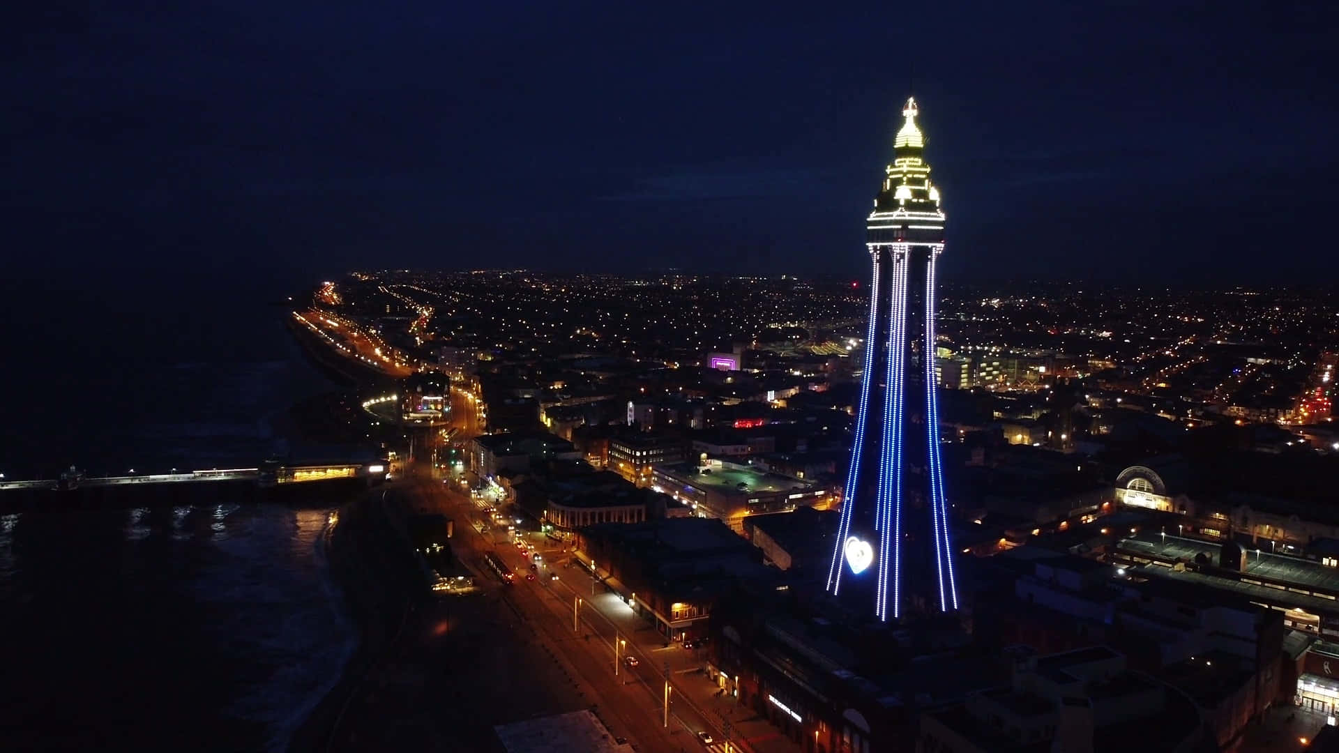 Illuminated Blackpool Tower Against Night Sky Wallpaper