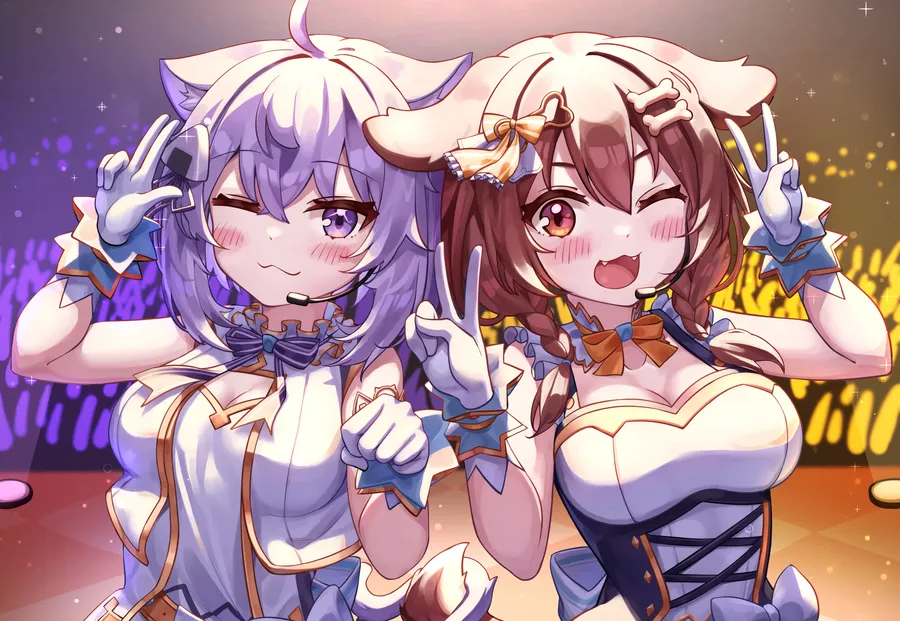 Inugami Korone With Nekomata Okayu Wallpaper