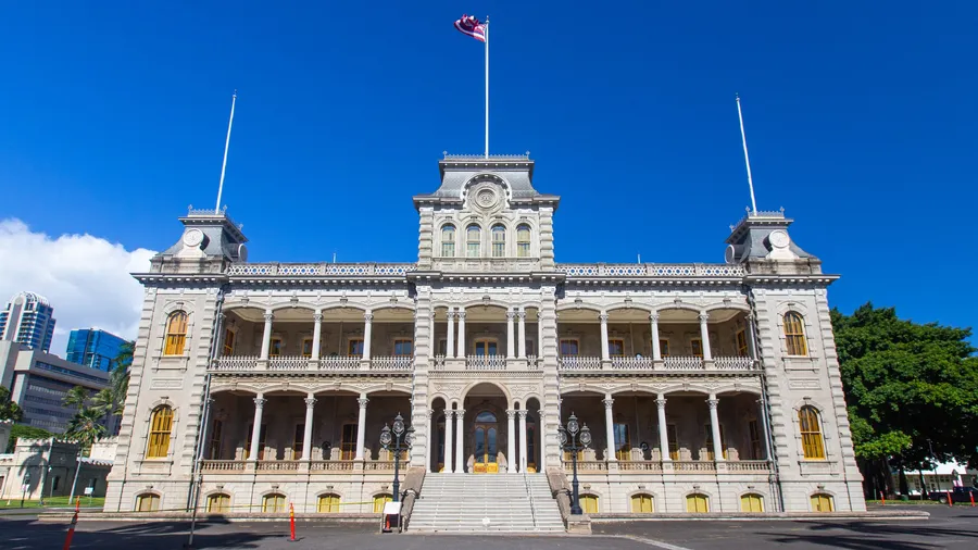 Iolani Palace Bright Blue Sky Wallpaper