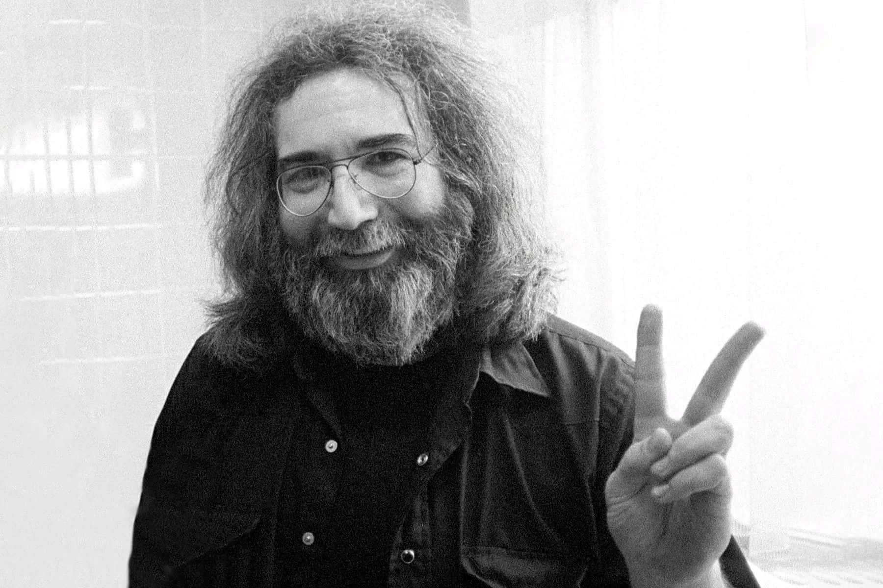 Jerry Garcia Peace Sign Blackand White Wallpaper