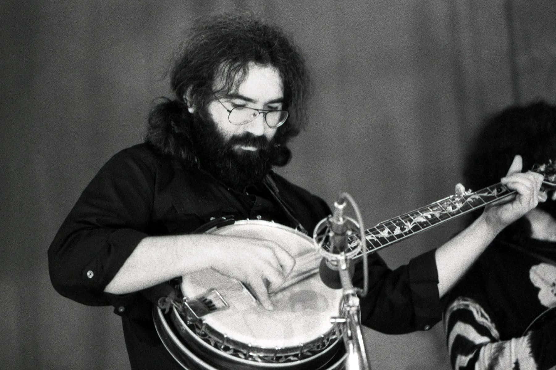 Jerry Garcia Playing Banjo Blackand White Wallpaper