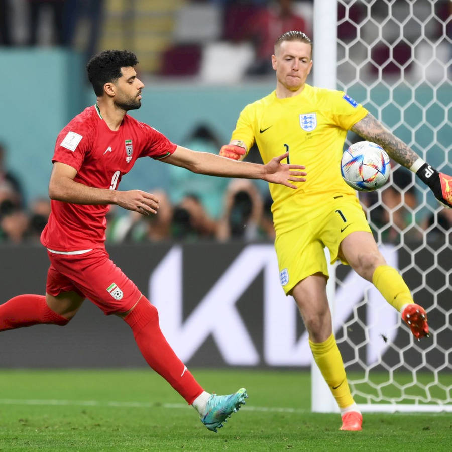 Jordan Pickford Stealing Ball From Opponent Wallpaper