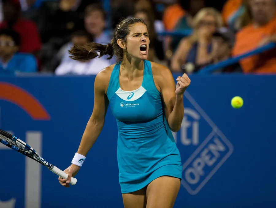 Julia Goerges Celebrating With A Fist Pump After A Victory Wallpaper