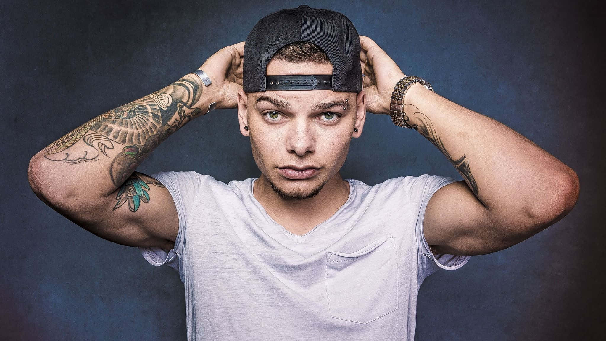 Kane Brown White Shirt And Cap Wallpaper