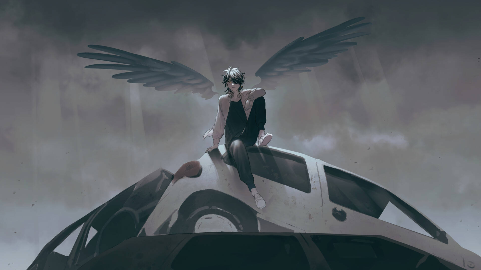 Kazutora Hanemiya With Black Wings Wallpaper