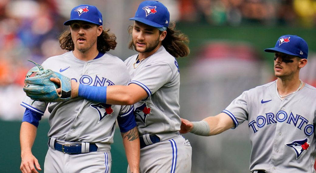 Kevin Gausman Stopped By His Two Teammates Wallpaper