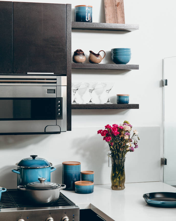 Kitchen Background Counter With Flowers Wallpaper