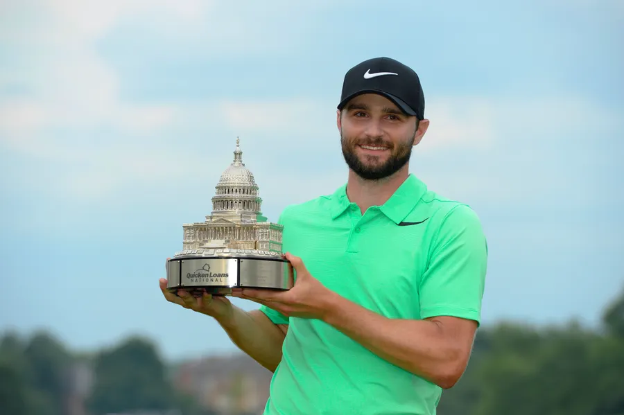 Kyle Stanley Holding A Golf Trophy Wallpaper