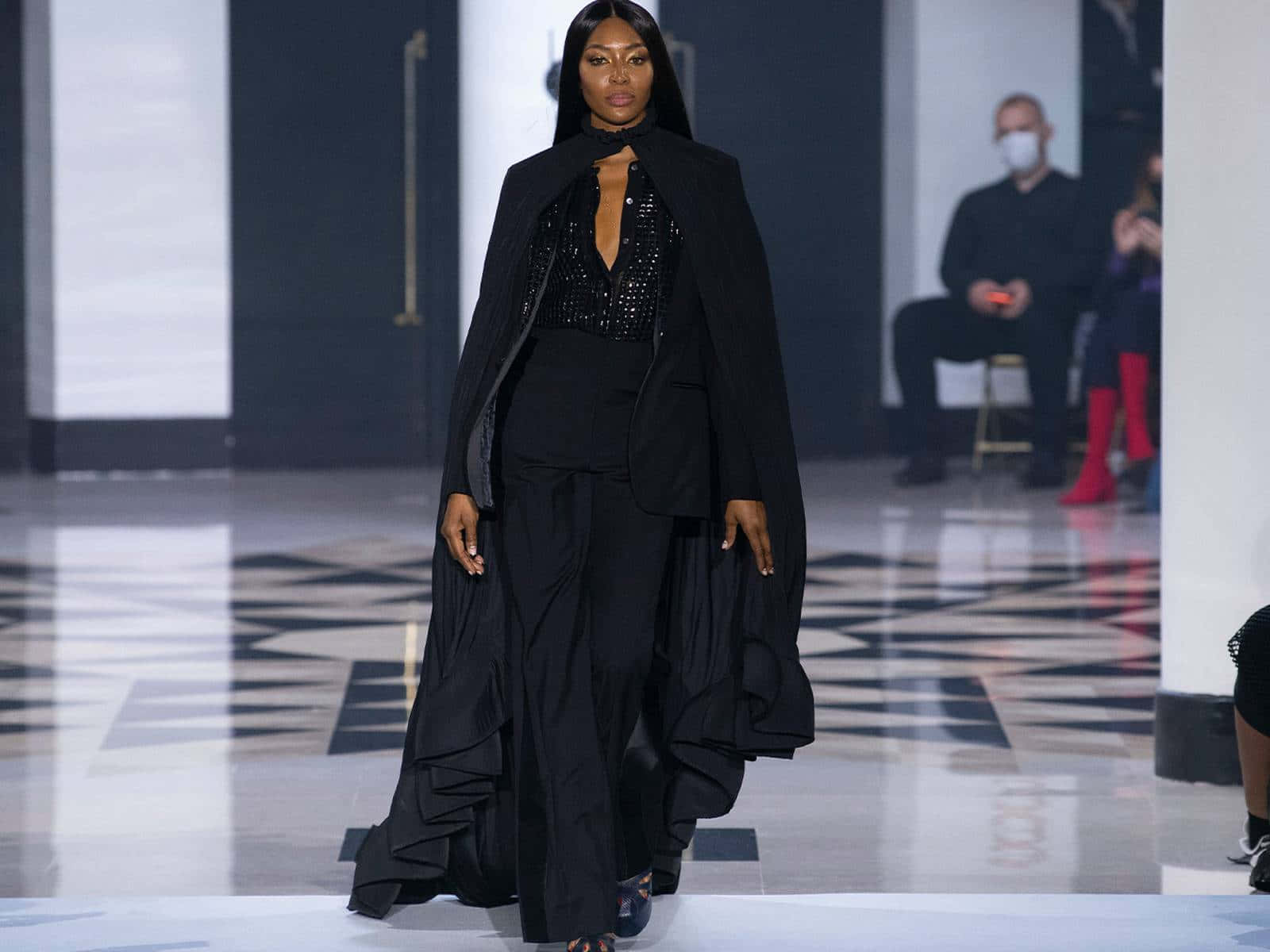 Lanvin Naomi Campbell In Black Jumpsuit Wallpaper