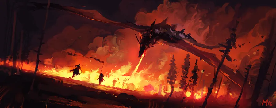 Lava Dragon Forest Fire Wallpaper