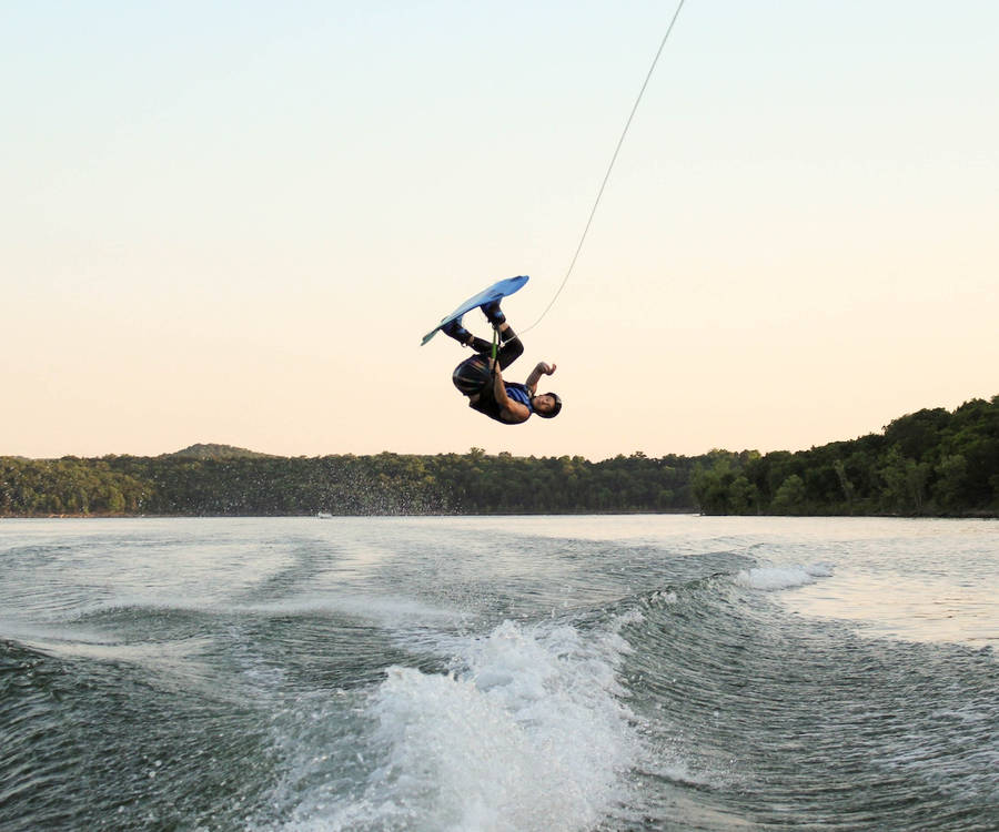 Leap Of Passion: A Wakeboarder Mid-air In Action. Wallpaper