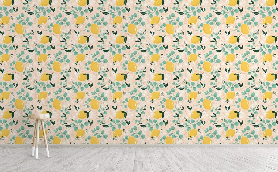 Lemon Watercolor Floral Patterns Wallpaper