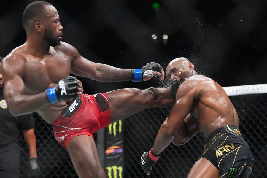Leon Edwards Kicking Kamaru Usman Wallpaper