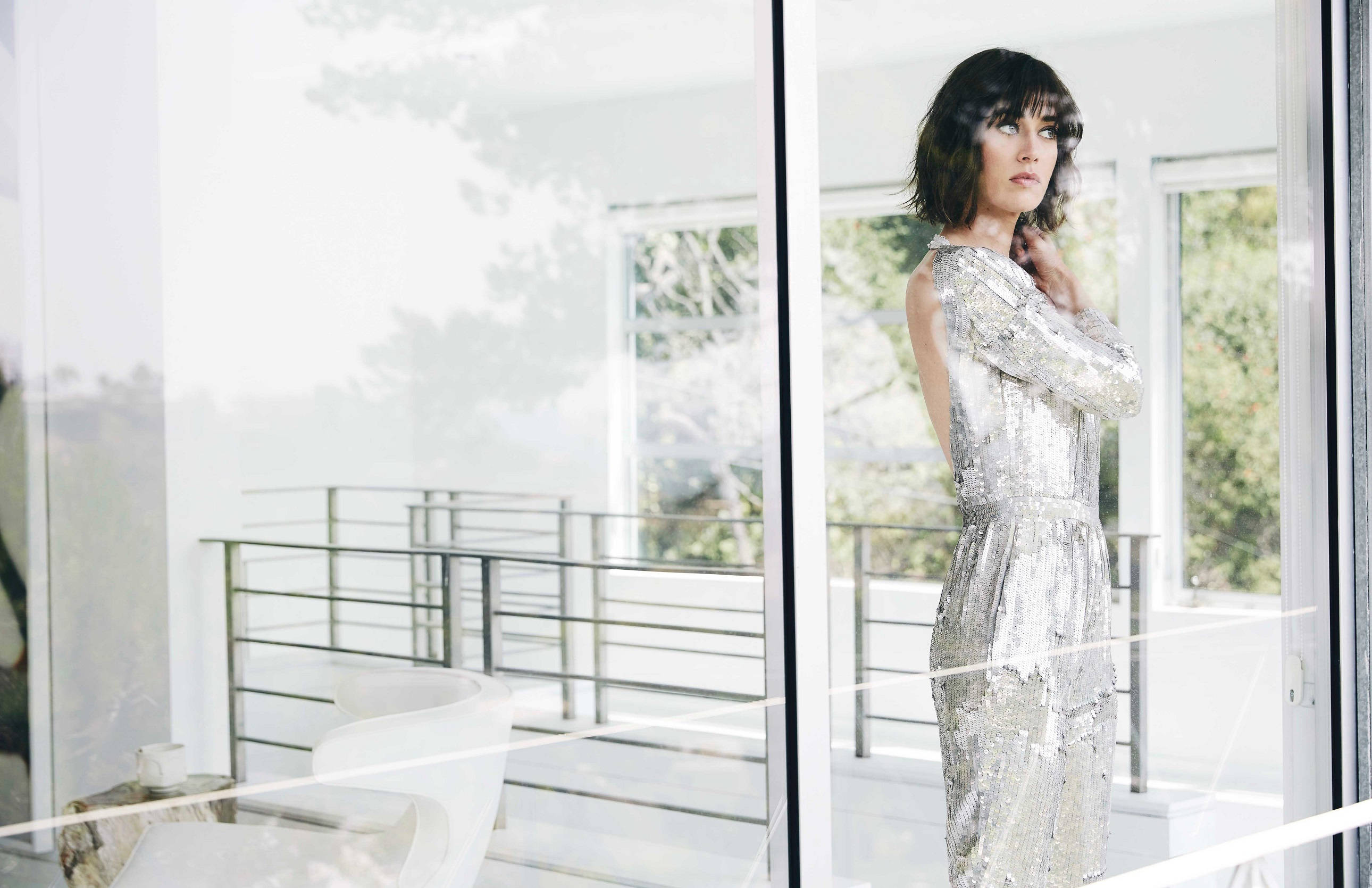 Lizzy Caplan By The Window Wallpaper
