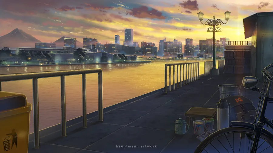 Lo Fi Anime Chill Bike On Lakeside Wallpaper