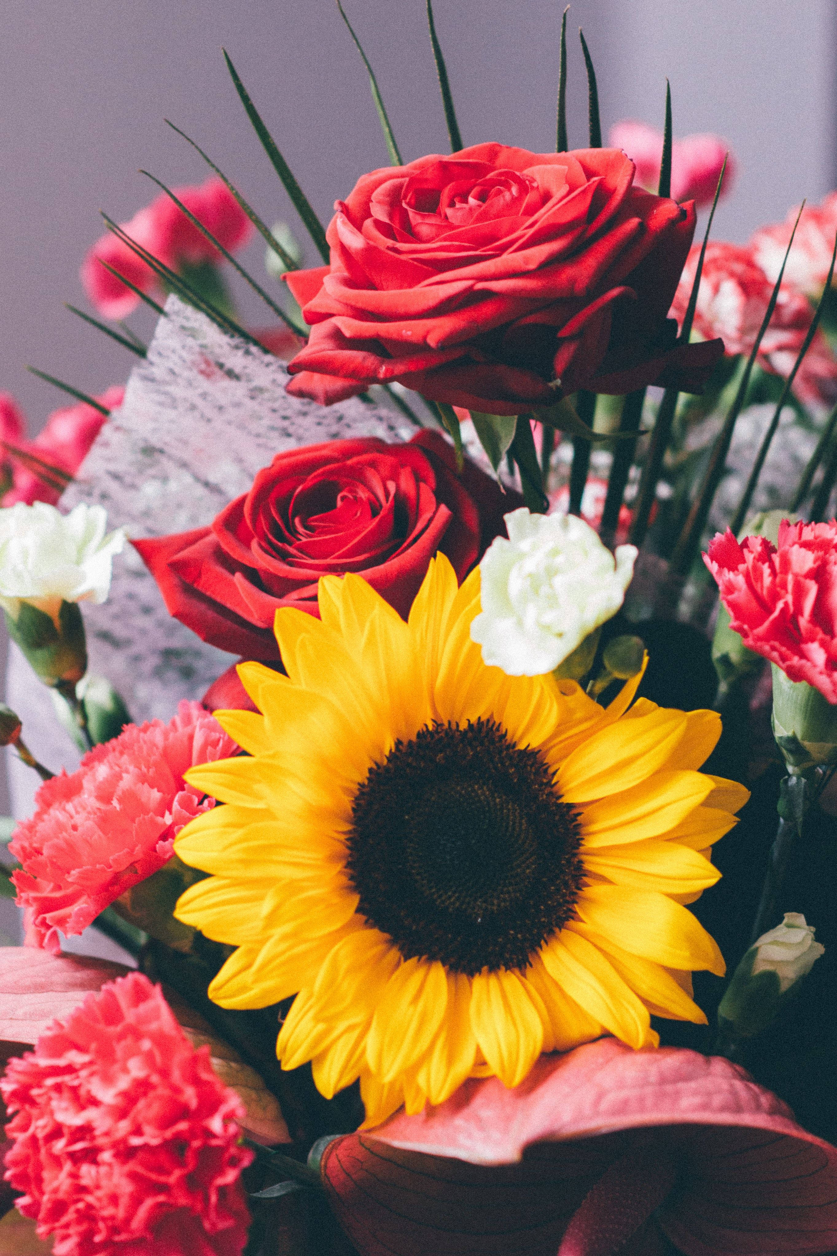 Lovely Bouqet Of Sunflowers And Roses Wallpaper