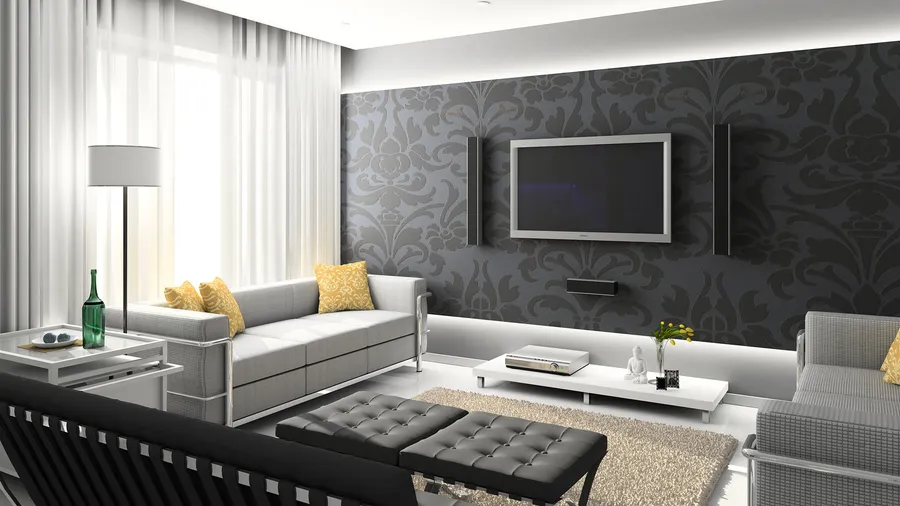 Luxurious Living Room With Black Wall Paint Art Wallpaper