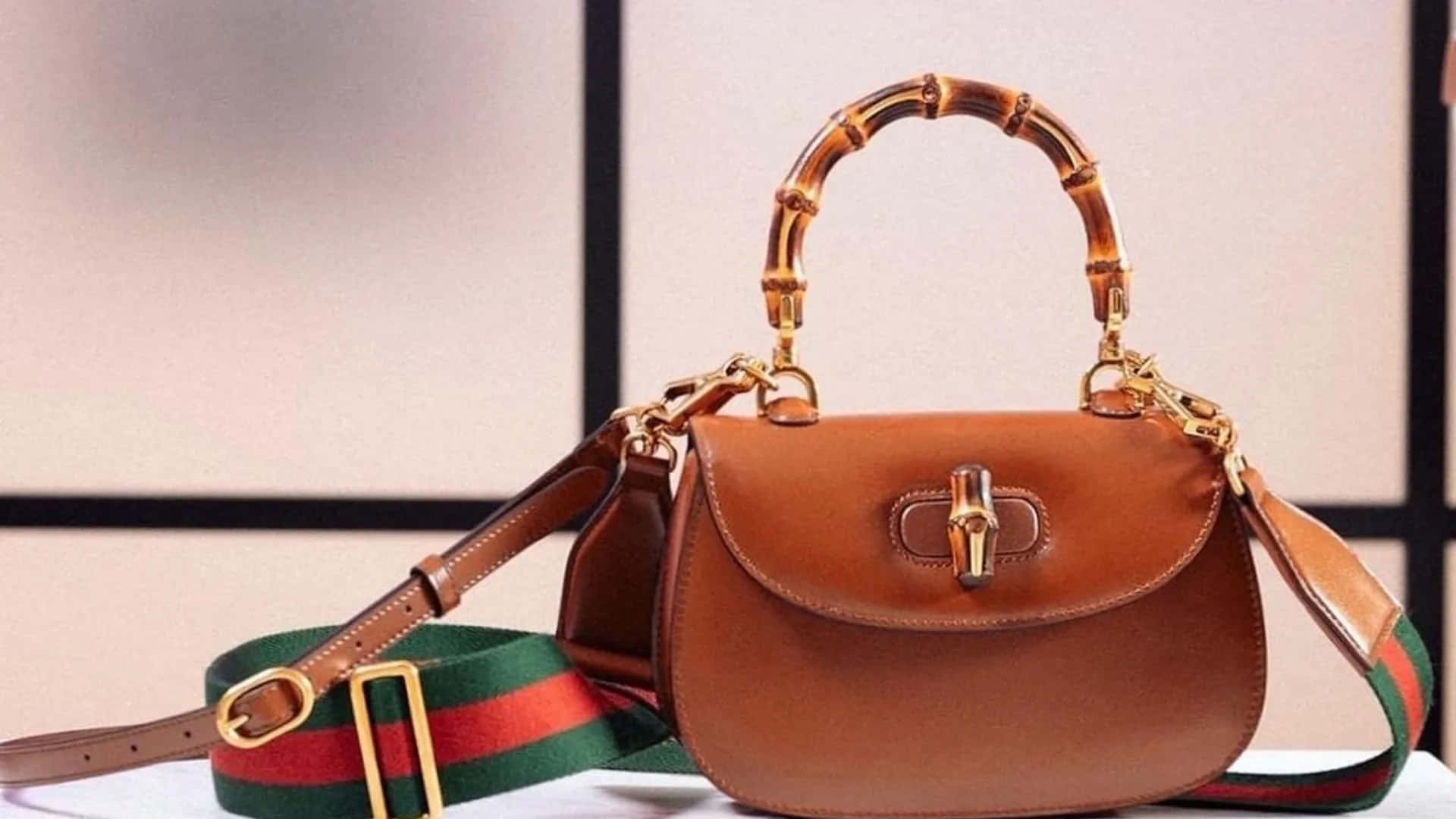 Luxury Redefined – A Brown Leather Gucci Bag In 4k Resolution Wallpaper