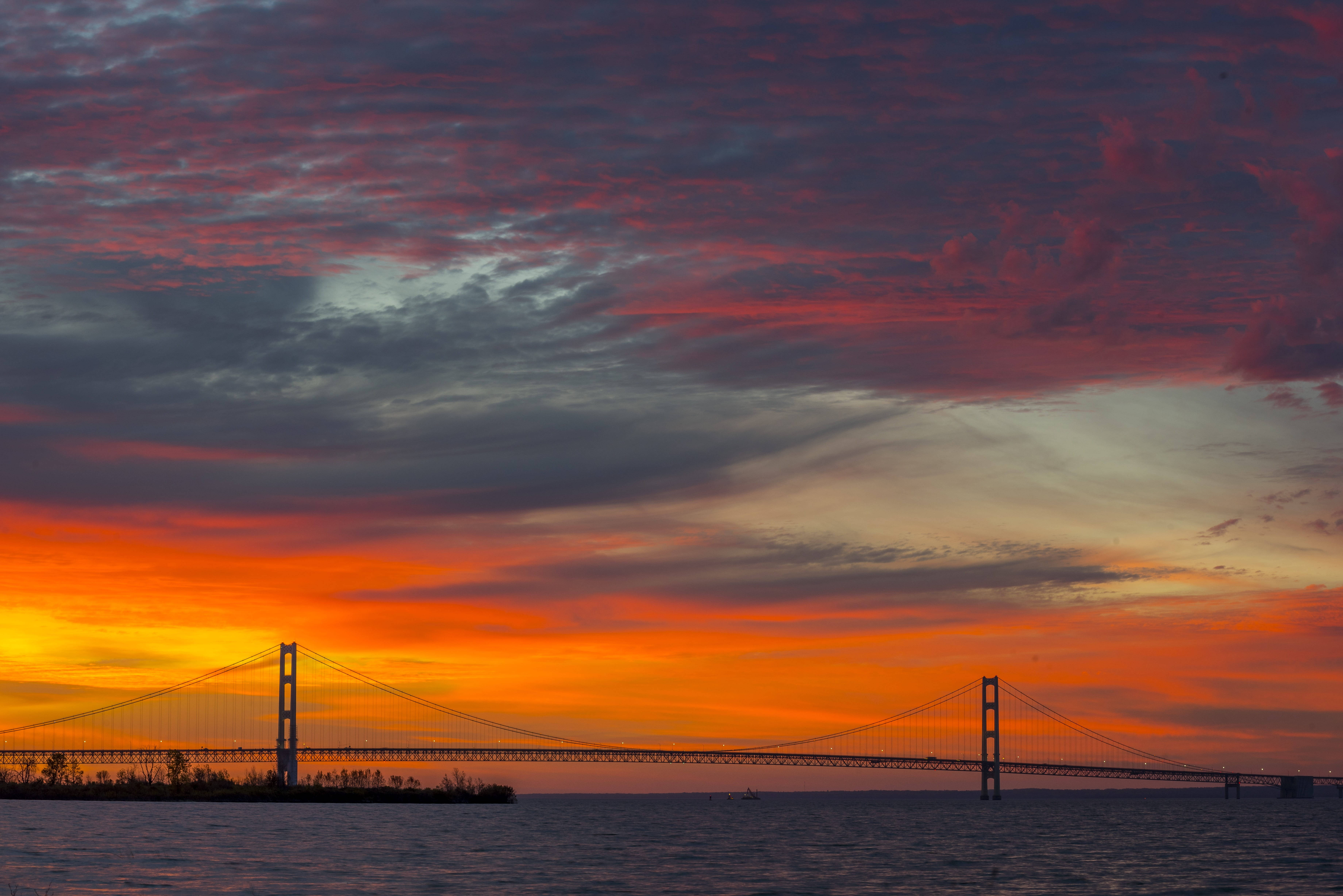 Mackinac Bridge With Sunset Wallpaper