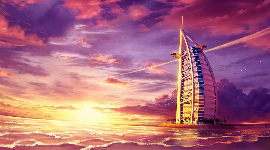 Majestic View Of Burj Al Arab Under The Enchanting Pink Sky Wallpaper