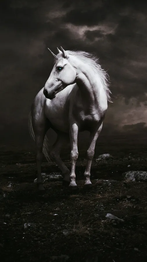 Majestic_ White_ Unicorn_ Dark_ Sky Wallpaper