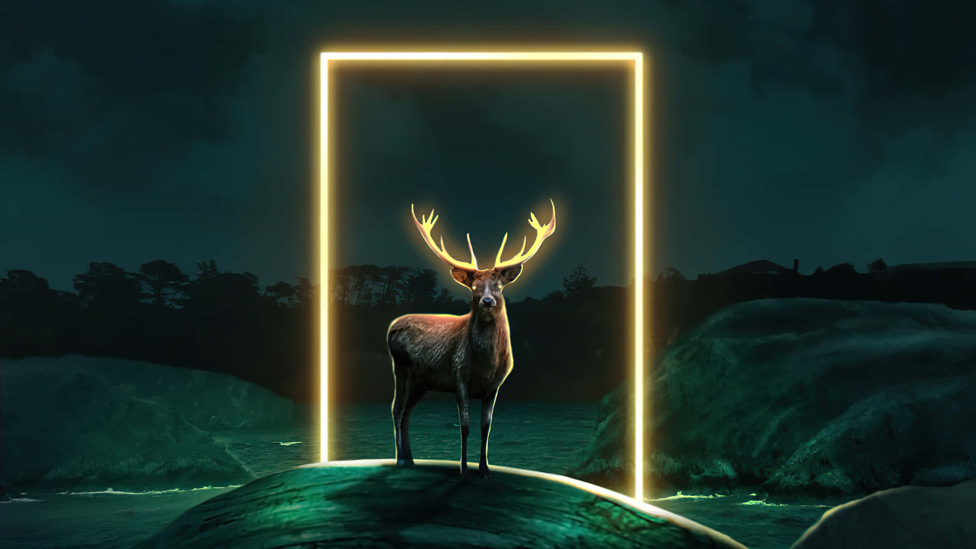 Majestic Young Deer Standing In A Clearing Of Trees Wallpaper