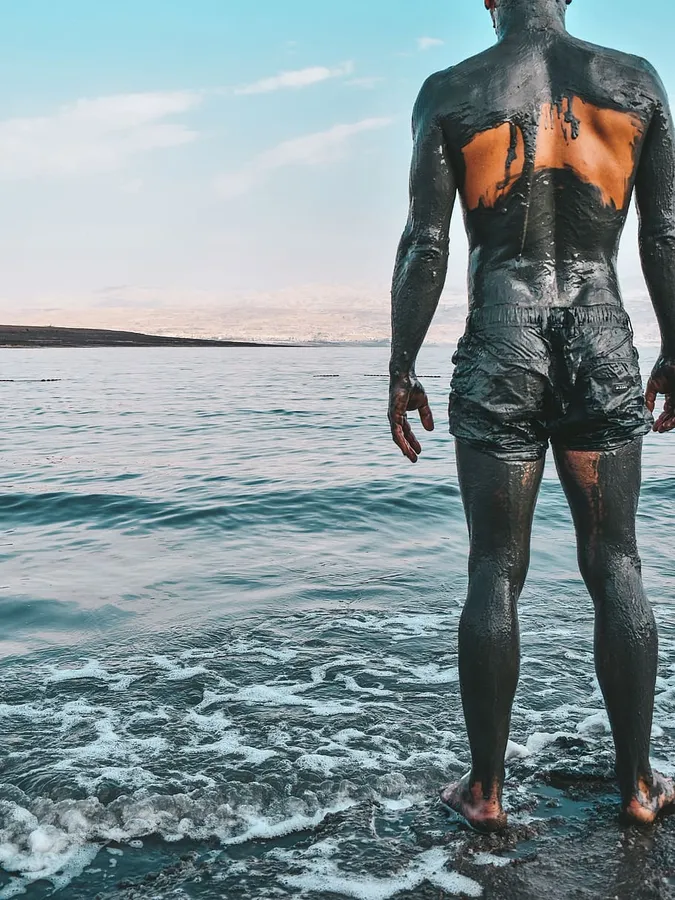 Man Covered In Dead Sea Mud Wallpaper