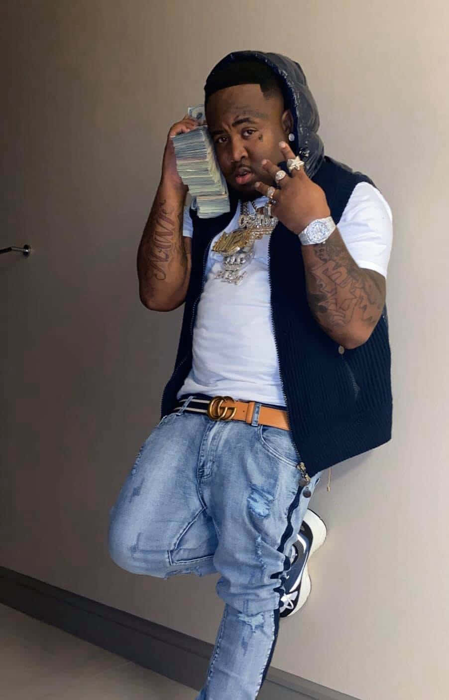 Man Holding Moneyto Ear Wallpaper