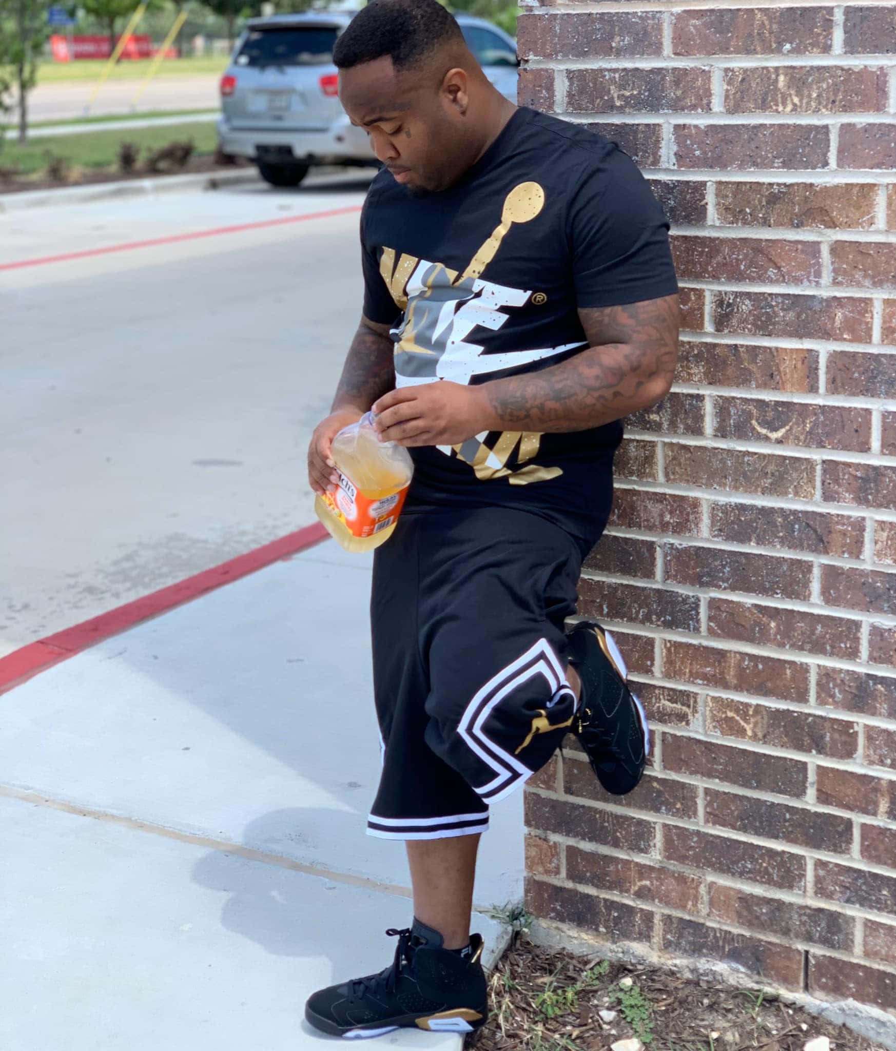 Man Leaning Against Brick Wall Wallpaper